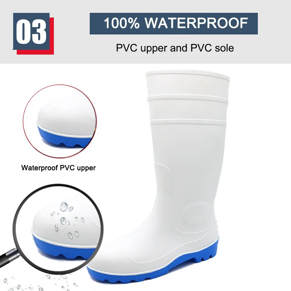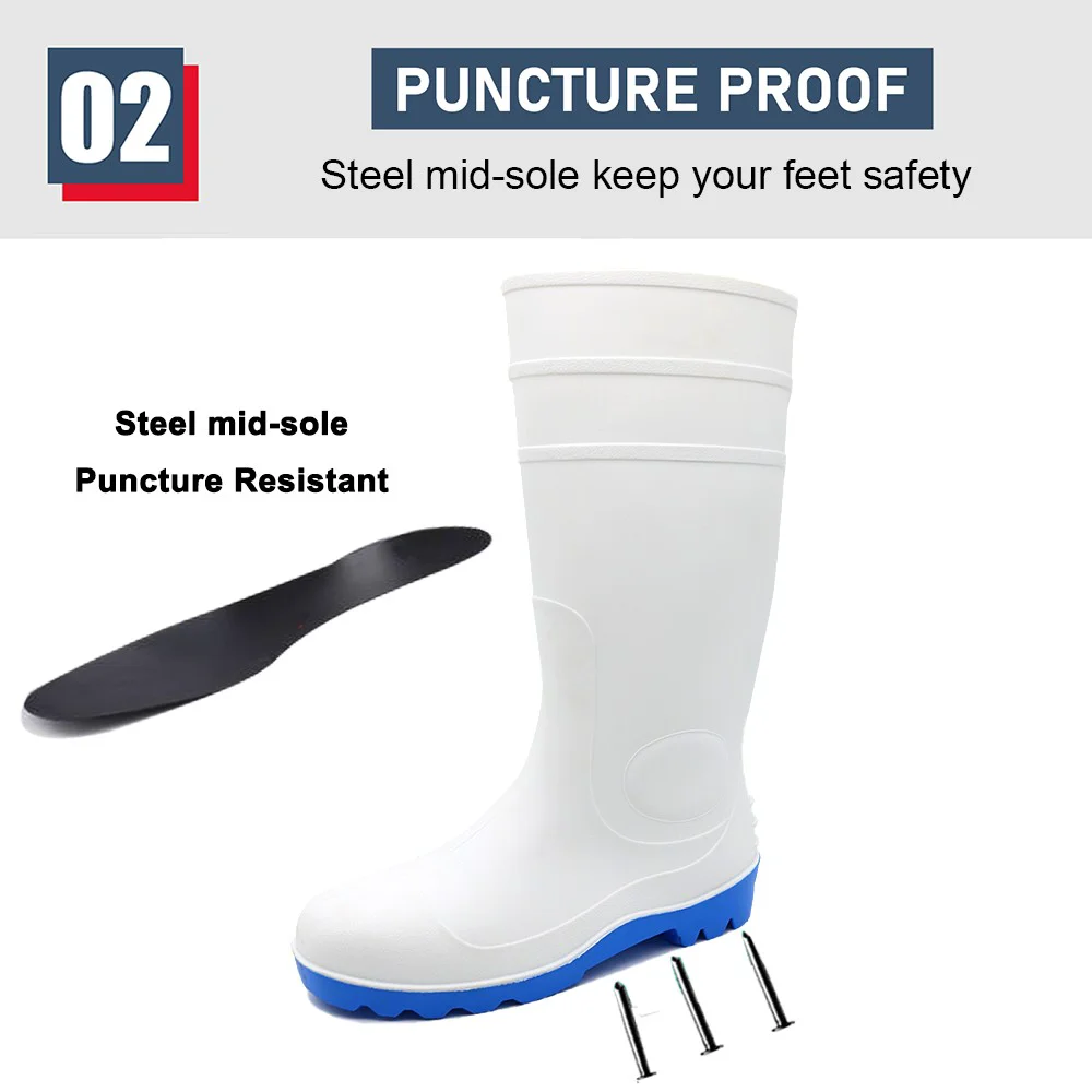 GB06 Beyaz Kaymaz Su Geçirmez Gıda Endüstrisi Çelik Burunlu PVC Güvenlik Yağmur Botları