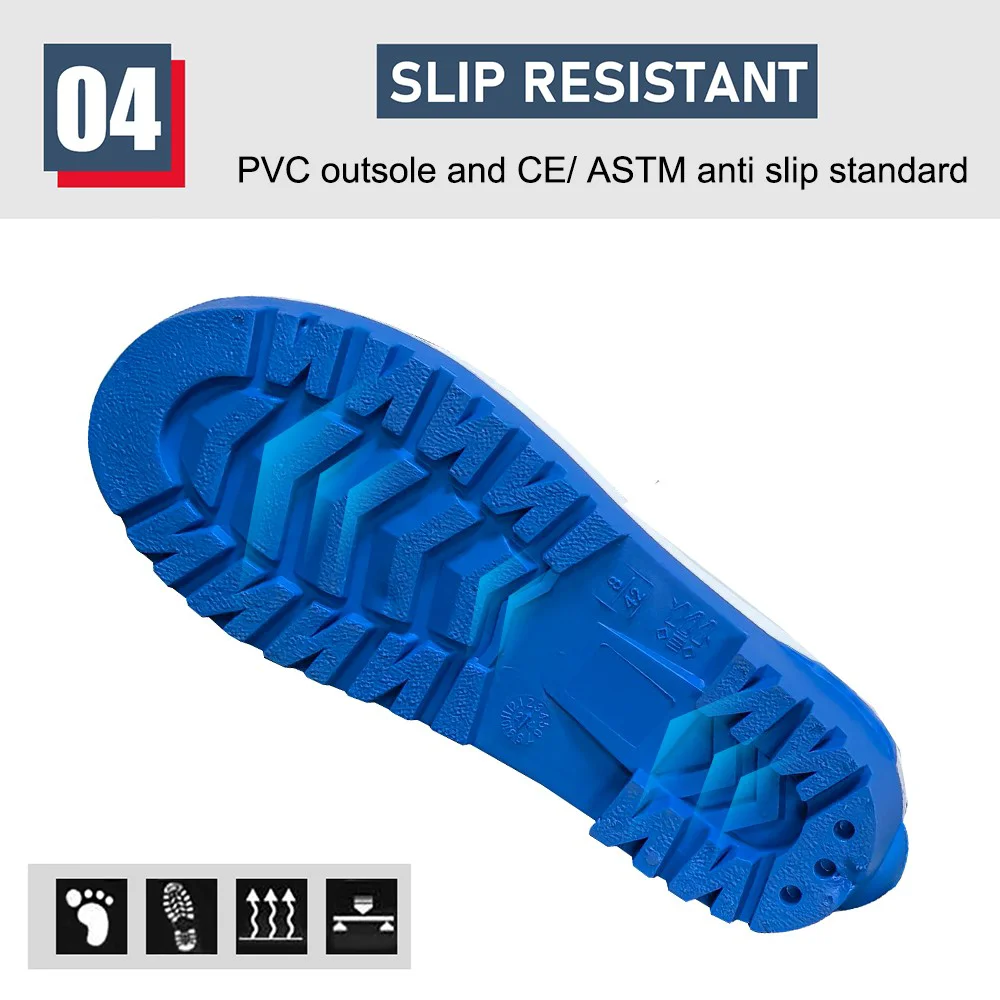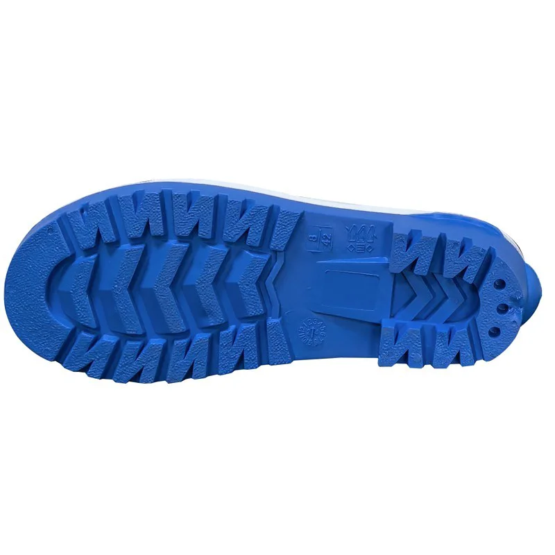 GB08 Beyaz Üst Mavi Taban Çelik Burunlu PVC Güvenlik Yağmur Botları Su Geçirmez