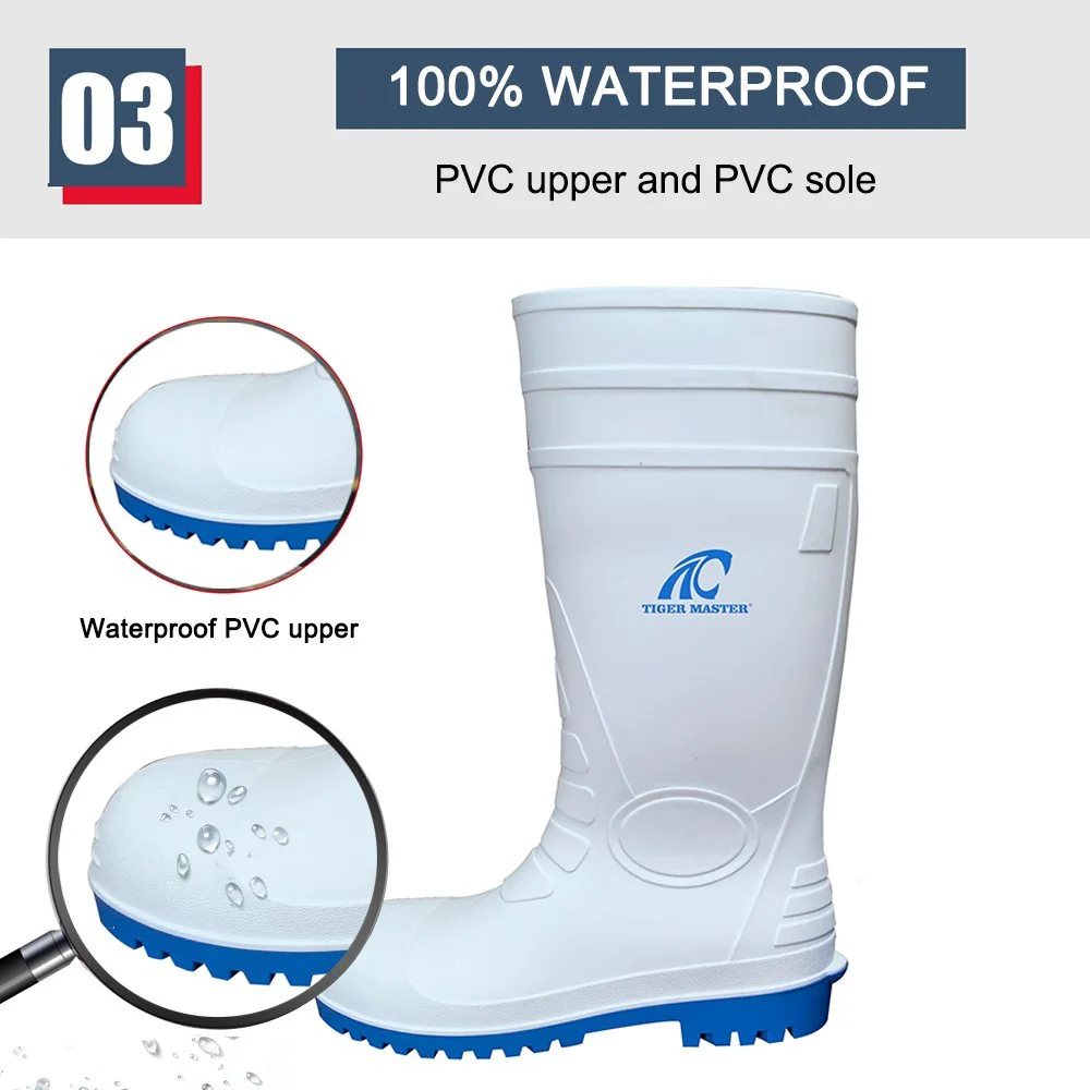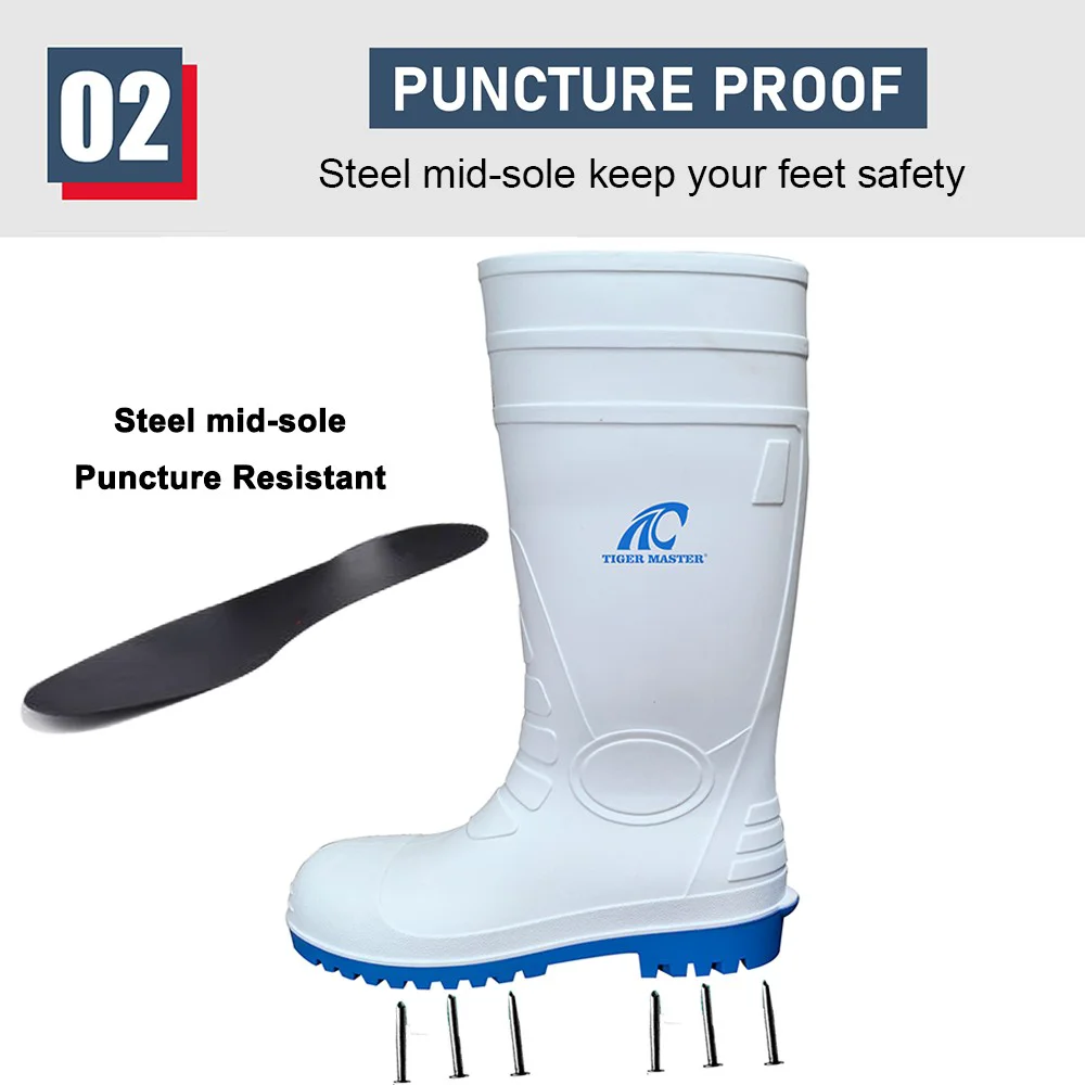 | Ürün Adı: | Tiger master anti kaymaz su geçirmez çelik burunlu delinme önleyiÇi PVC güvenlik botları beyaz |