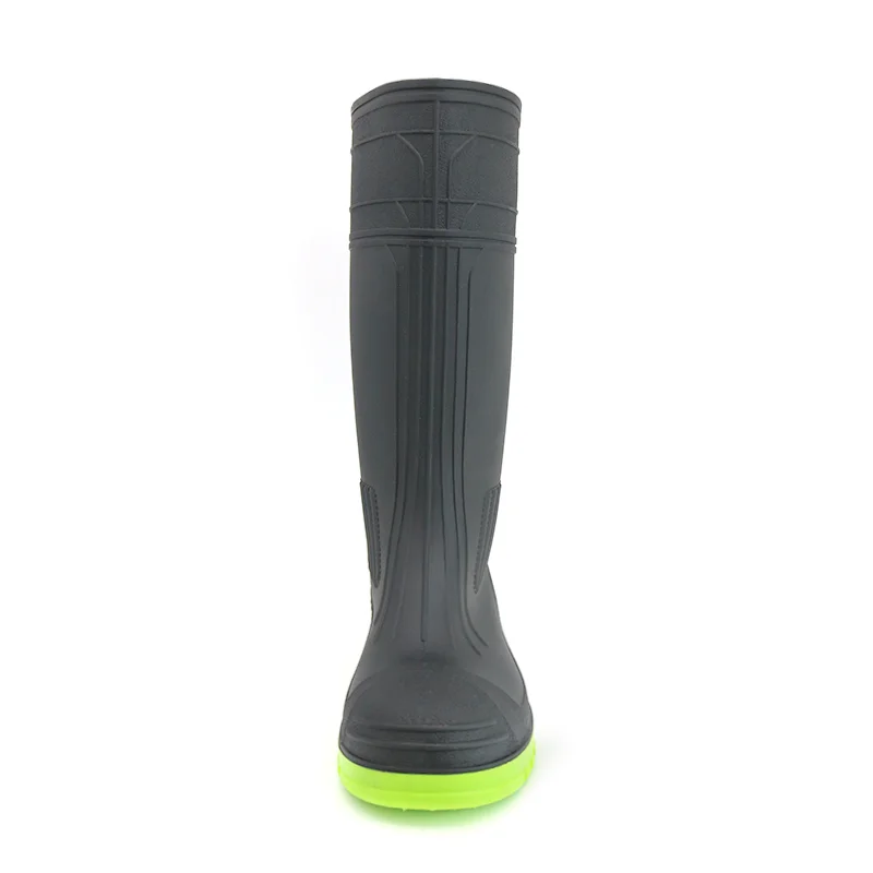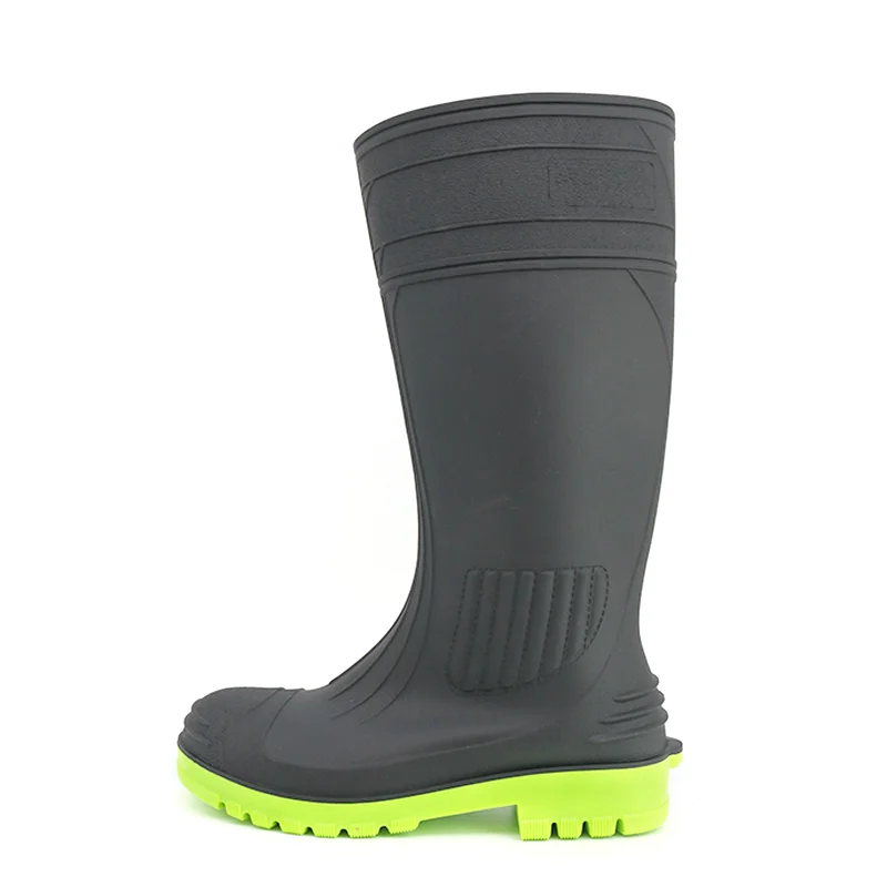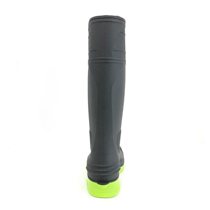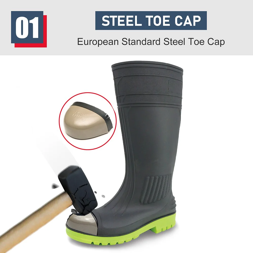 GB38 Siyah Diz Yüksek Kaymaz Su Geçirmez Yapı PVC Güvenlik Yağmur Botları Çelik Burunlu